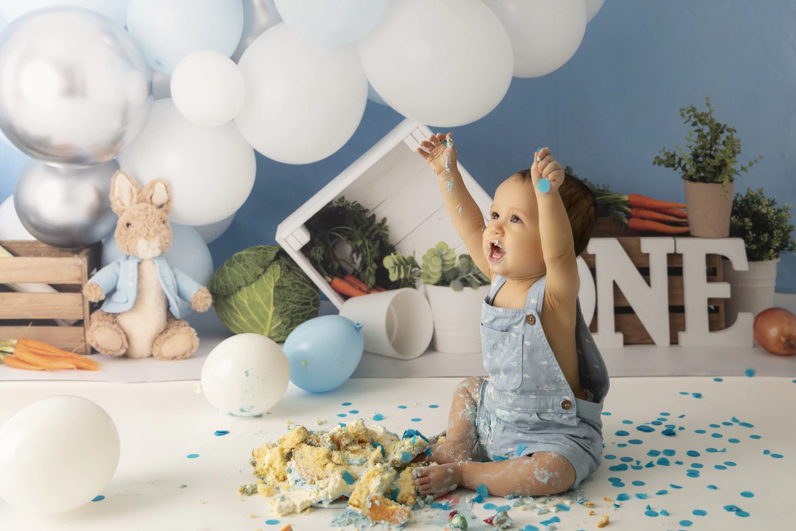 Once we have you booked in we will send you a Contract, Invoice and a Questionnaire, please read through these documents, and tend to them as required. We will also send you an email setting out all of the cake smash backdrops that we have available. Please let us know as soon as you settle on a backdrop so that we can begin working with our Baker. While we do have some basic items available for use in the Studio, we ask you to source your own outfit for these. Please also take note that parents will likely be handling a cake-covered toddler, we highly recommend bringing some spare clothes, or clothes that you don’t mind getting messy.