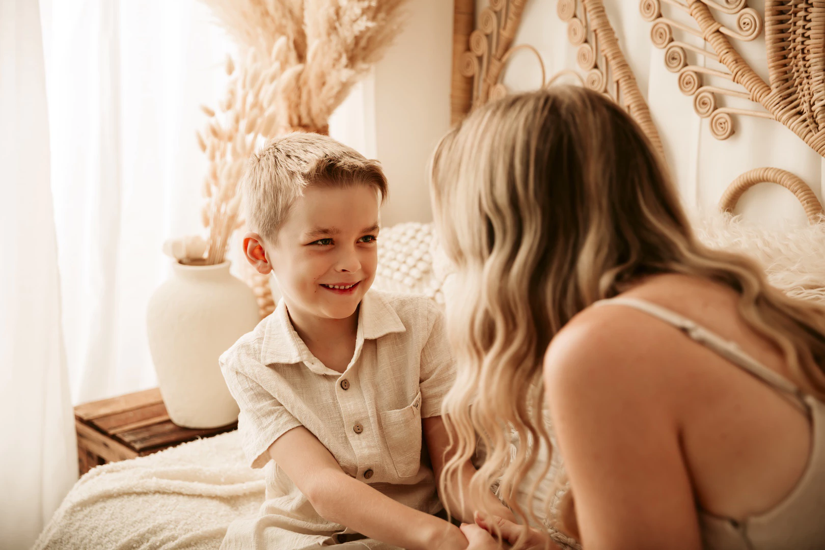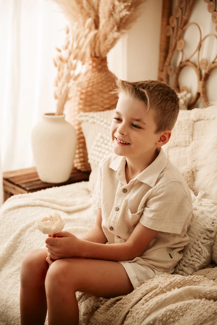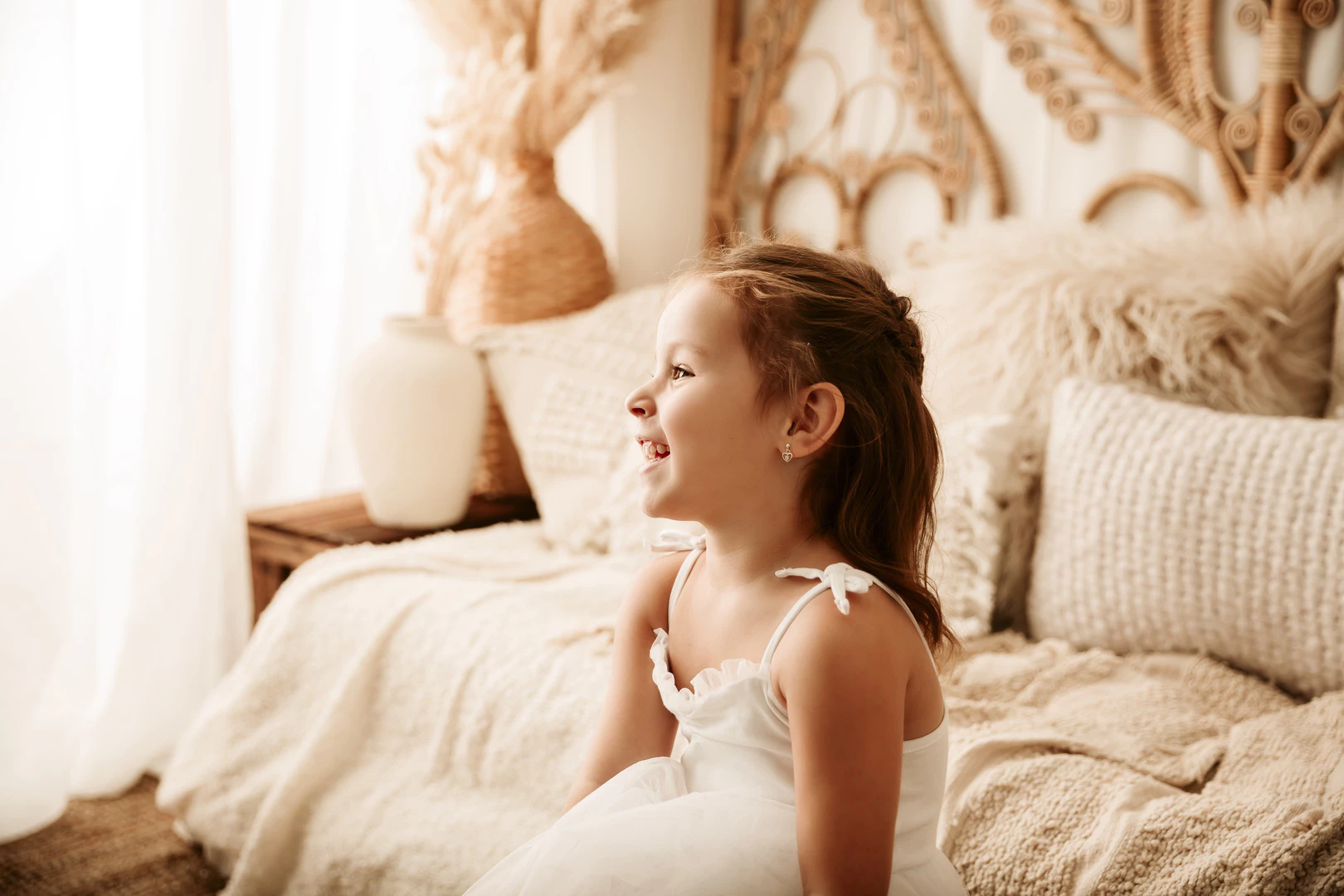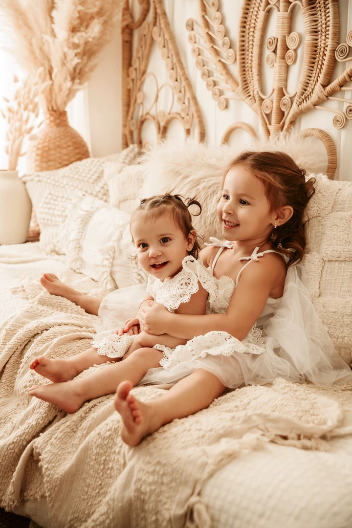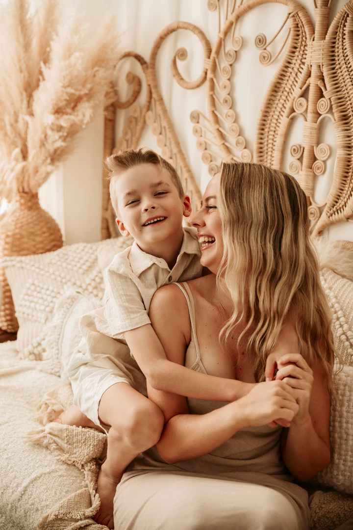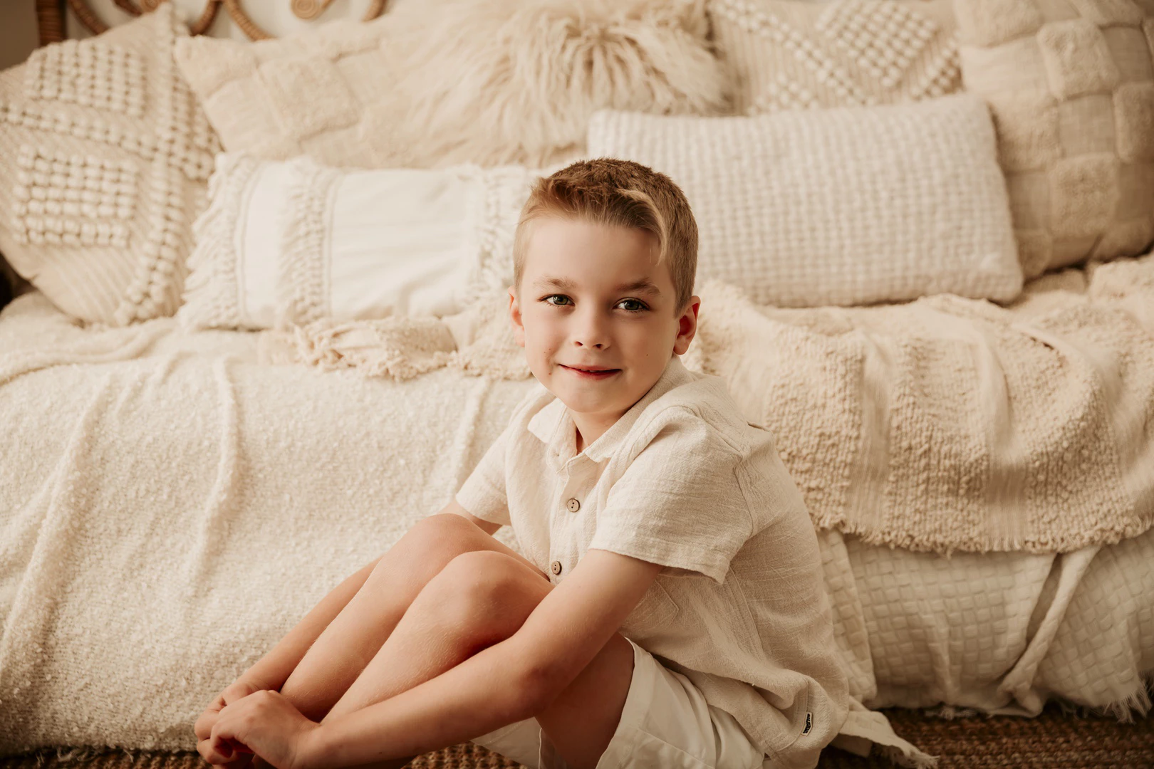 Welcome to Boho Minis, where comfort meets charm! Dive into a world of soft textures with our cozy blankets and pillows. Adorned with dried pampas grass and bunny tails, our space is bathed in soft white light filtering through sheer curtains, framed by a delightful rattan bedhead. Available year-round, perfect for timeless family photos—no weather woes here! The most perfect gift for Mothers Day – we can provide you with a beautiful physical Gift Certificate to give your wonderful Mum / Partner on the day.